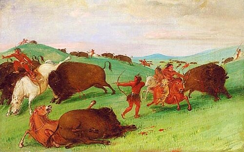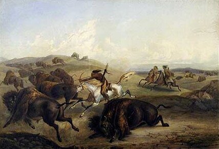 Gli indiani a caccia del bisonte in un quadro di George Catlin