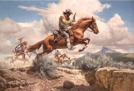 E cosi oggi se lo immaginano tutti, ventre a terra, Ia tesa del cappello rialzata all’indietro dal vento, lanciato a briglia sciolta verso l’orizzonte.