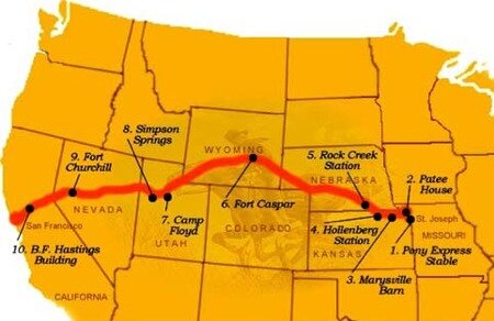 Dal Missouri alla California, passando per il Kansas, il Wyoming, un pezzetto del Colorado, il Nebraska, lo Utah e il Nevada, in dieci giorni (indiani, banditi, bufere e altri incidenti di percorso permettendo), lungo 3.050 chilometri e 157 stazioni di posta.