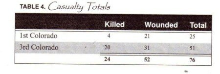 Un altro mito del Sand Creek è che gli Indiani furono uccisi senza opporre resistenza, come agnelli al macello. Ma non fu esattamente così. Secondo Gregory Michno le prime notizie dopo lo scontro parlarono di 10 soldati uccisi e 38 feriti. Il 4 dicembre l’aiutante di Chivington Samuel Lorah riportò 11 morti e 40 feriti. Il numero finale fu, però, più alto. Il 3° Colorado perse 20 uomini e ebbe 31 feriti, mentre nel 1° Colorado ci furono 4 caduti e 21 feriti, per una cifra finale di 24 morti e 52 feriti. Le testimonianze di coloro che parteciparono allo scontro, descrissero una battaglia accanita. Il Sergente Decatur, che aveva preso parte alla guerra contro il Messico combattendo nelle battaglie di Brazito e Sacramento e si era scontrato coi Lipans vicino a Paras, disse: “Non vidi mai, in tutta la mia vita, un combattimento più feroce”. Il Sergente Coffin, dopo aver visto i soldati morti, affermò: “Pensai che la nostra battaglia fosse stata vinta a carissimo prezzo”. Il soldato Howbert disse che il numero dei morti e feriti dimostrava che gli indiani si erano difesi in modo accanito e ostinato.