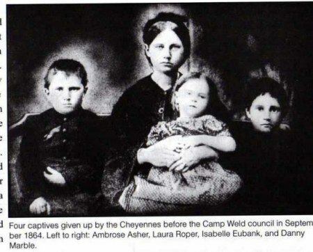La sera dopo la battaglia, in un tepee, furono trovati due bambini e una donna anziana, mentre due ragazze e un bimbo in un’altra parte del campo. Furono trovati e salvati Zerepta, la moglie di John Smith, e il suo bambino di 4 anni, William Gilpin Smith. Amache, la moglie dell’interprete John Prowers fu salvata con i suoi due figli e così pure una donna Arapaho e il nipote che si nascondevano in un boschetto. Una donna ferita gravemente fu portata alla tenda-ospedale. Si chiamava Spanish Woman e aveva smarrito la sua bimba. Cercarono di curarla, ma era morente. Quando chiese della figlia, un soldato le rispose che era riuscita a fuggire.