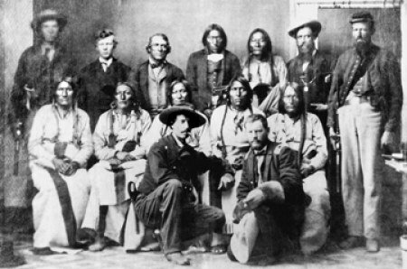 Silas Soule (in basso a destra) con Wynkoop tra gli indiani