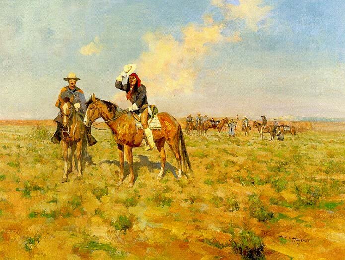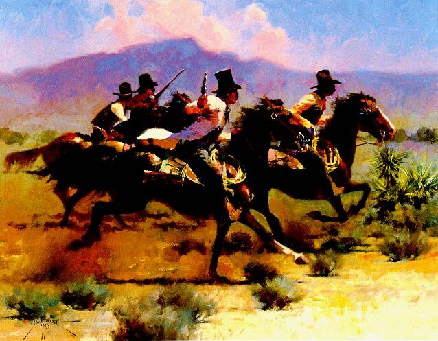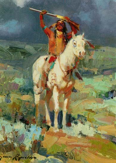 Il west più profondo, la frontiera e gli indiani, protagonisti della storia, uomini e donne, animali, sono i protagonisti delle tele che vi proponiamo. Sono opere di buona parte dei pittori moderni più famosi del mondo del genere western e sono quadri molto belli e, almeno in alcuni casi, particolarissimi per lo stile adottato.