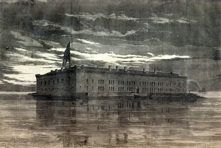 Il porto di Charleston si affacciava su una baia con una stretta e ben protetta imboccatura; proprio al suo ingresso era posta su un isolotto artificiale una massiccia fortificazione munita di cannoni, che avrebbe potuto facilmente bloccare il transito di qualsiasi nave, costretta a navigare per uno stretto canale non più largo di un chilometro. Si trattava del forte Sumter, tenuto da una piccola guarnigione federale di soli 73 uomini (compresi gli strumentisti della banda musicale!), agli ordini del maggiore Robert Anderson, un kentuckiano ex-possessore di schiavi, ma fedelissimo all’Unione. Con la sua compagnia di artiglieri, Anderson aveva già da Dicembre evacuato il forte Moultrie, situato sulla costa e considerato non difendibile, e si era rinchiuso a forte Sumter, dove contava di resistere il più possibile.