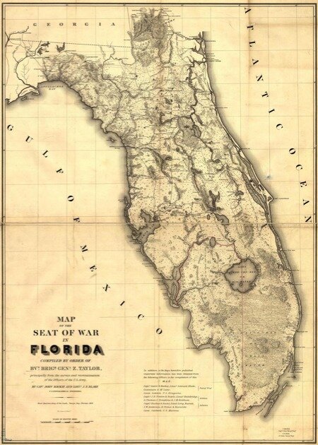 La mappa della Florida ai tempi delle guerre dei Seminole