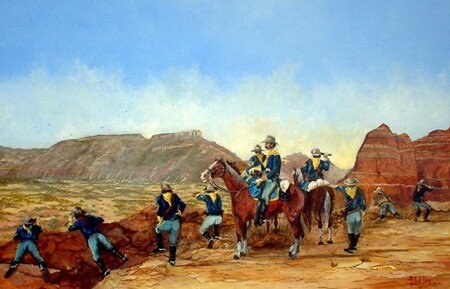 I nativi, infatti, sapevano che le ‘giacche blu’ stavano marciando verso i loro territori e per questo decisero di proteggere donne e bambini facendoli riparare nei villaggi sorti lungo il canyon mentre i guerrieri avrebbero impegnato le colonne dei soldati cercando di arrestare la loro marcia.