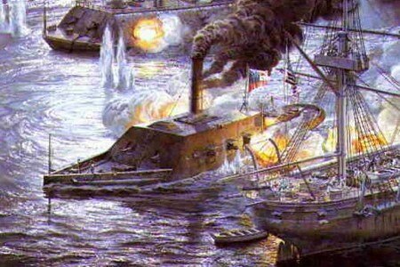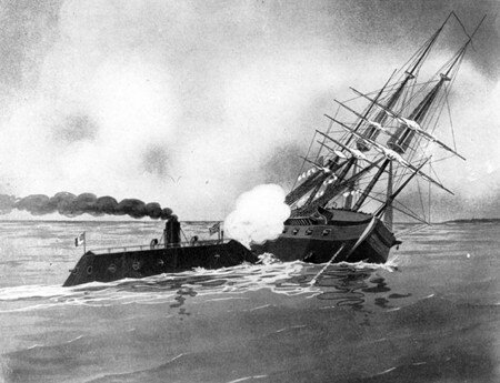 Il vecchio, audace Buchanan, ne assunse il comando. L’8 marzo 1862, data memorabile per tutti i tempi a venire, la Virginia uscì da Norfolk comandata da Buchanan per attaccare da sola l’intera flotta nordista. Il risultato fu sbalorditivo: i grossi proiettili dei cannoni unionisti rimbalzavano sulle corazze della Virginia come ciottoli.