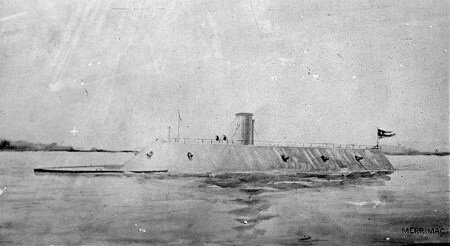 Ma il Nord si decise a costruire corazzate soltanto sotto la minaccia dei meridionali. Questi avevano compiuto sforzi estremi per arrivare primi. A Norfolk ripescarono lo scafo si una fregata a vapore nordista auto affondatasi, la Merrimack. La nave fu tagliata all’altezza della linea di galleggiamento, corazzata, armata di cannoni Brooke e ribattezzata Virginia.